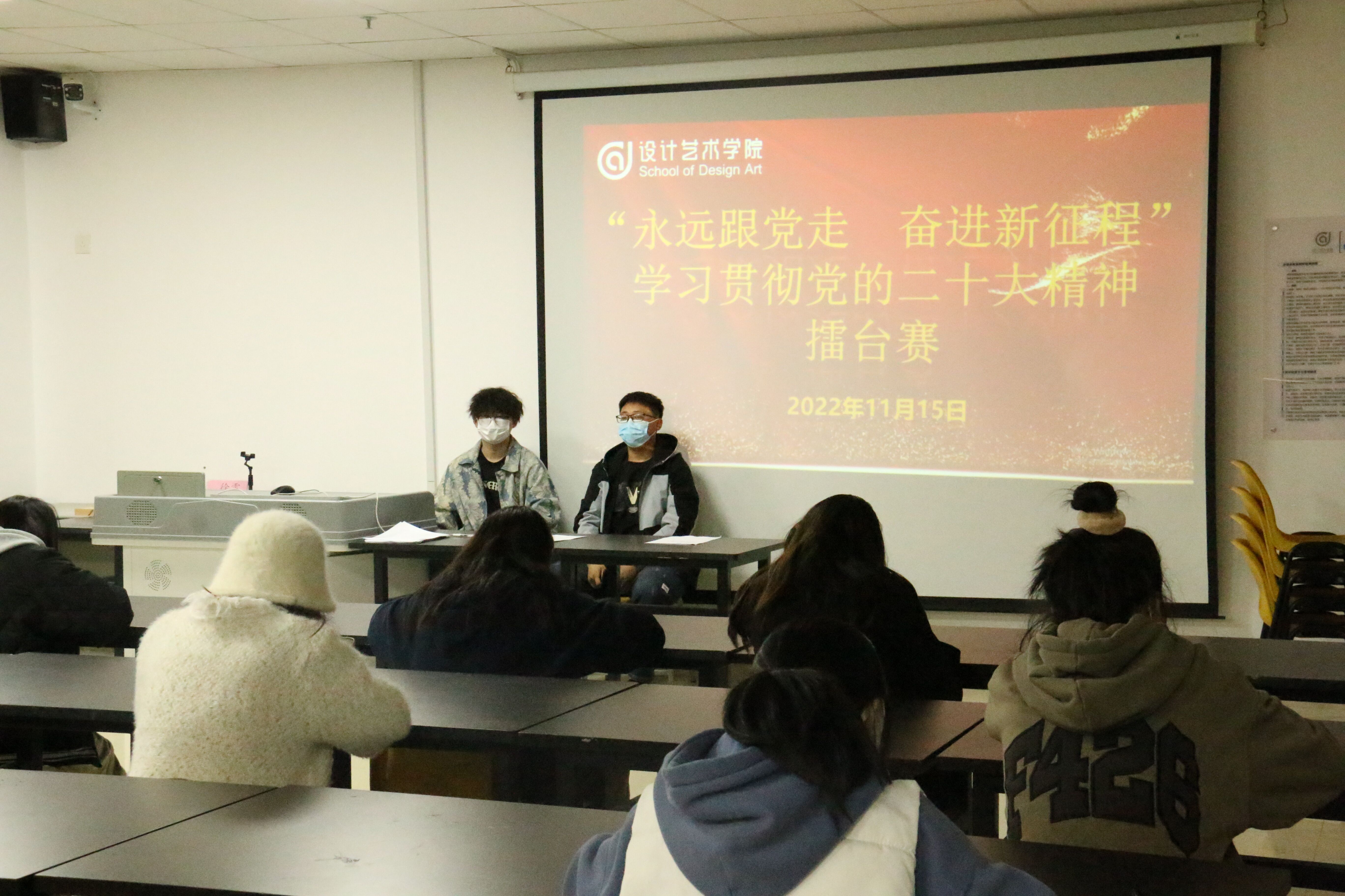 为了深入学习贯彻党的二十大精神,设计艺术学院学生党支部于2022年11月16日举办“永远跟党走 奋进新征程”学习贯彻党的二十大精神擂台赛学院初赛,学生党支部书记陆玉洁老师出席本次活动。