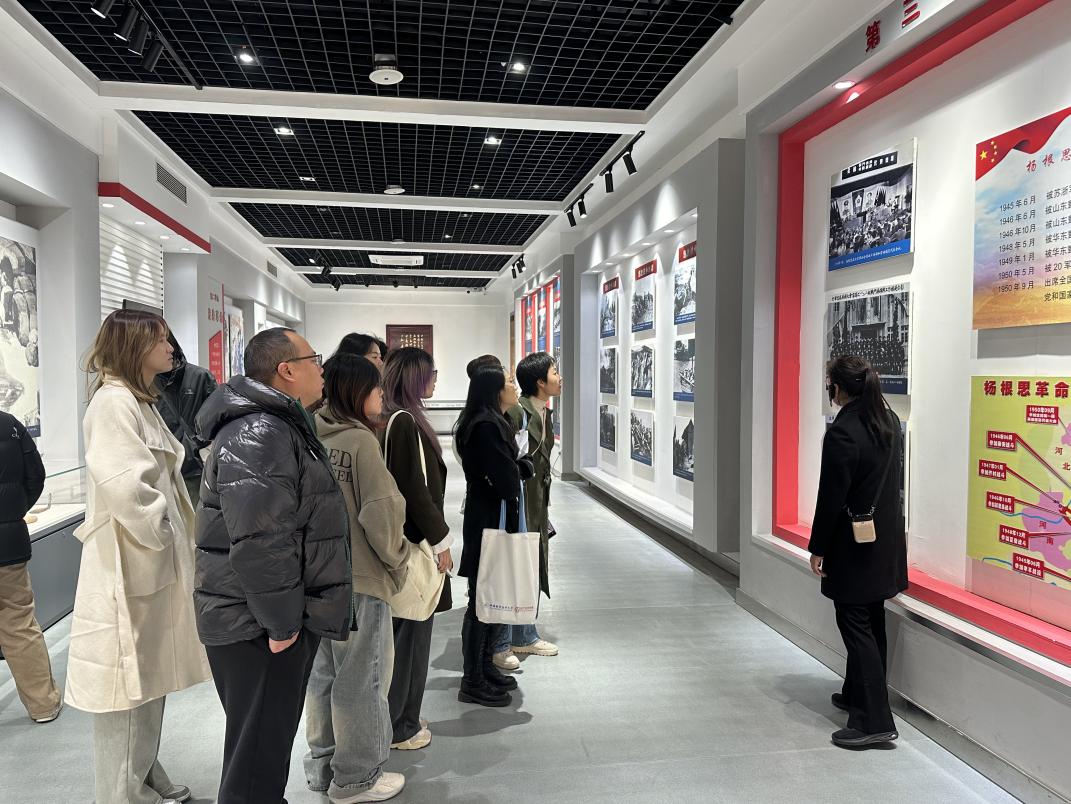 在讲解员的带领下,大家集体参观杨根思烈士陈列馆,聆听烈士英雄事迹。馆内一幅幅珍贵图片、一件件实物展品、一段段详实文字,生动再现了这位中国人民志愿军特等功臣、特级战斗英雄从苦难童年到投身革命的光辉人生。当讲解至抗美援朝长津湖战役的关键场景时,所有人都驻足凝神——在零下四十度的极寒战场,杨根思率领三排连续打退敌人八次疯狂进攻,在弹药用尽、阵地告急的生死关头,他高举炸药包毅然冲入敌群,用生命诠释了“人在阵地在”的铮铮誓言。“不相信有完不成的任务,不相信有克服不了的困难,不相信有战胜不了的敌人”的英雄呐喊,此刻仿佛穿越时空回响在展厅之中,让在场每一位师生的内心都受到强烈震撼,对“三个不相信”精神的时代内涵有了更为真切的感悟。