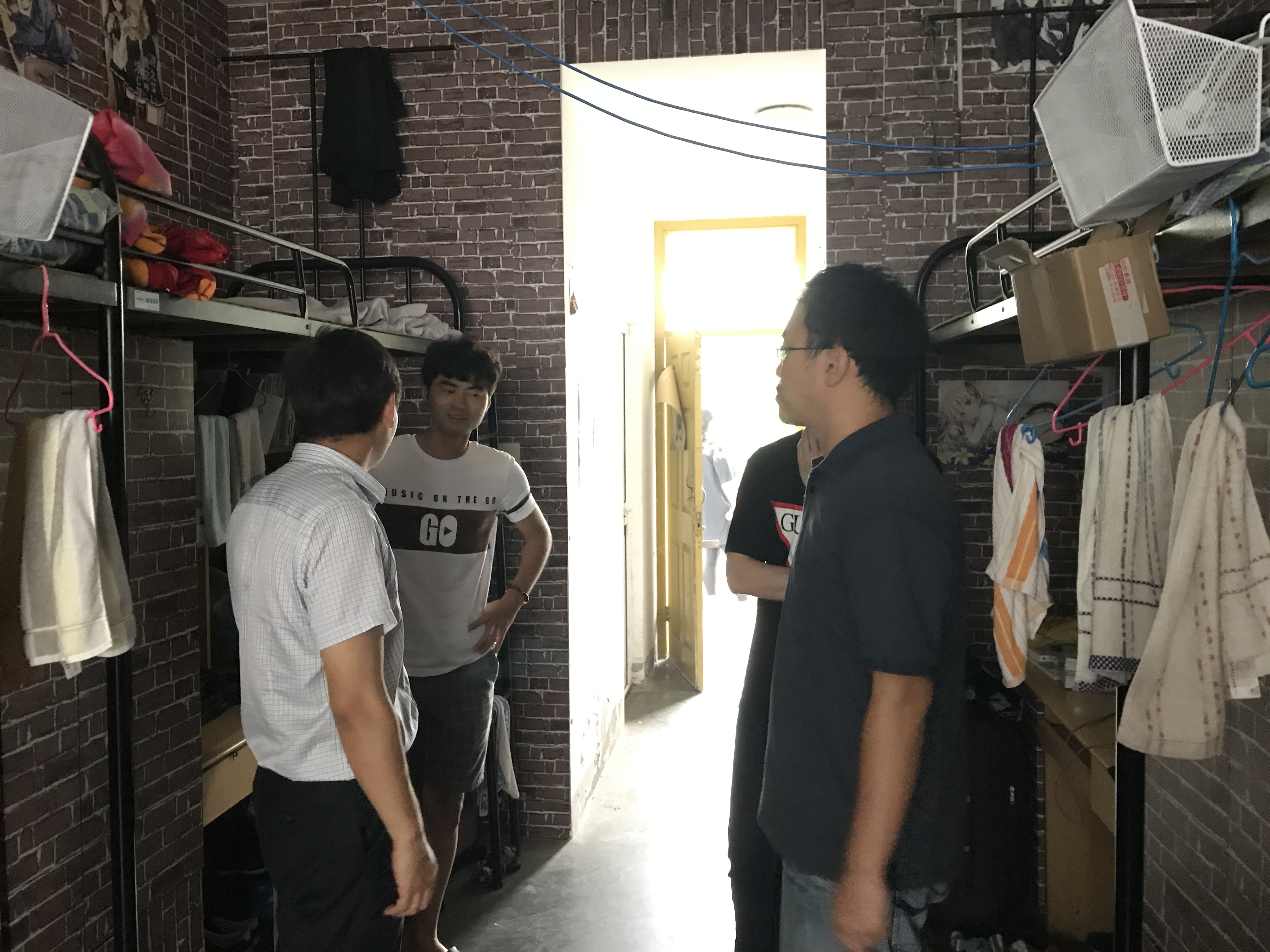 9月19日下午,艺术与设计学院党总支书记刘文平及各系部党员老师代表,深入宿舍,了解学生的学习情况,家庭情况及生活状况,并重点督查了宿舍环境和宿舍安全工作。刘书记和党员代表就学生关心的问题和遇到的一些困惑进行了充分的解答和教导。告诫学生努力学习,合理规划自己的大学生活,做一个有志有为的青年。