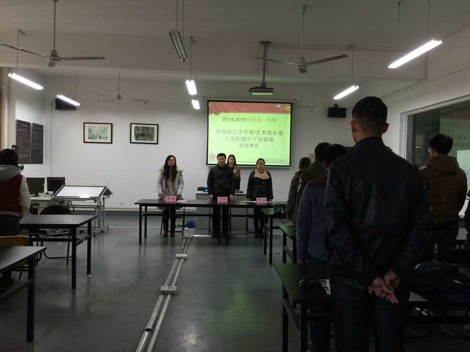 2014年12月16日下午三点,艺术设计系/外国语言文学系2014-2015学年第1期分党校结业典礼在无锡职业技术学院新工业中心BN508教室隆重举行。外语系商务英语班学生陆雯为主持人,外语系党总支书记王占东老师、外语系学生党支部书记周嫄老师、艺术系学生党支部书记李湘老师以及全体分党校学员参加了此次典礼。