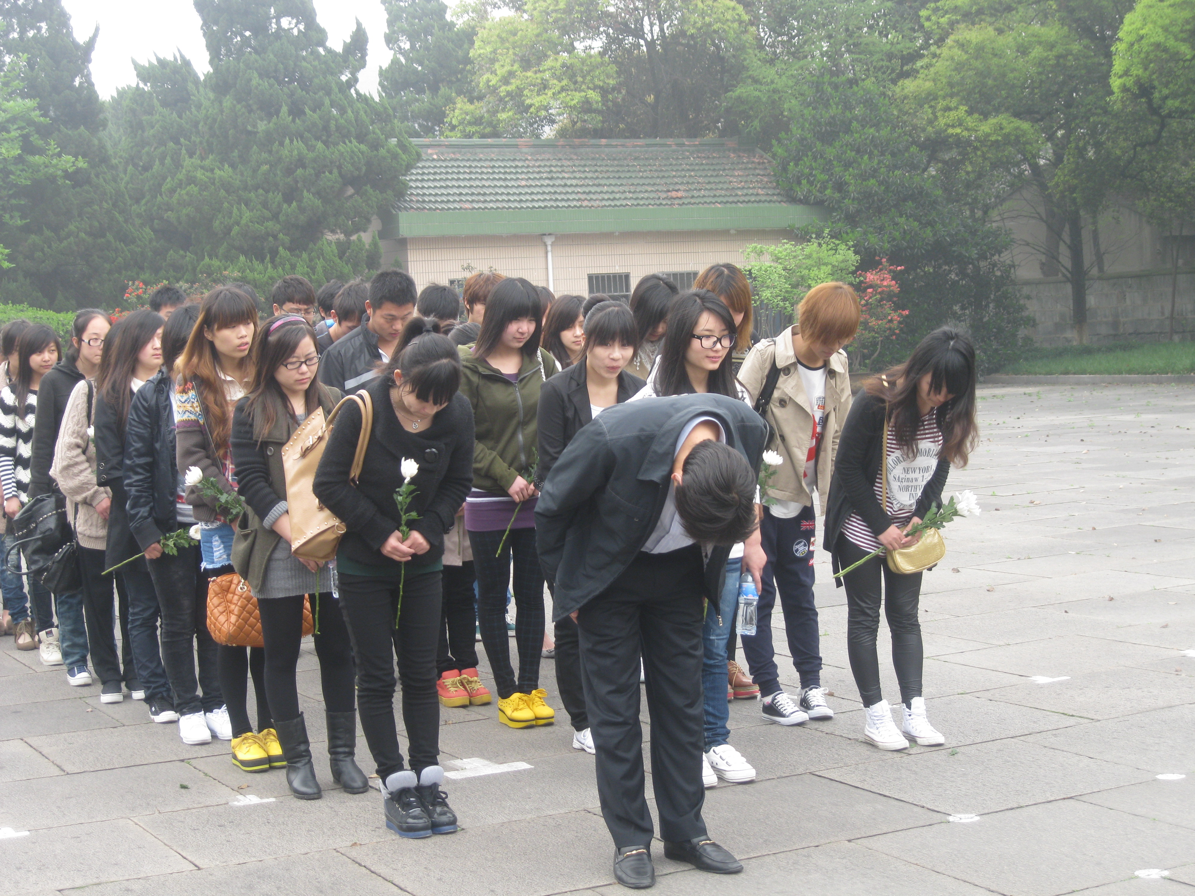 祭扫仪式结束后,同学们有序地瞻仰了革命烈士纪念碑并向革命先烈进献白花。在革命烈士纪念碑下,大家静心感受着的先烈们的革命精神,寄托着对烈士们的崇敬和哀思。我系领导与同学参观了革命烈士纪念馆,那泛黄的书页,悲惨的照片,无不显示出当年革命先烈们保家卫国的壮举,“誓死不做亡国奴”的铮铮誓言在今天仍激励我们奋勇向前。