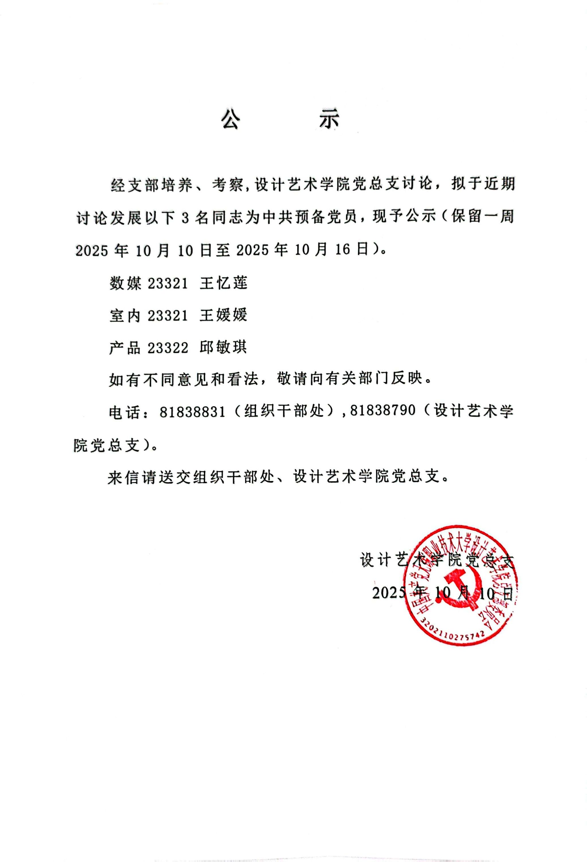 学生党支部2025年10月党员发展公示