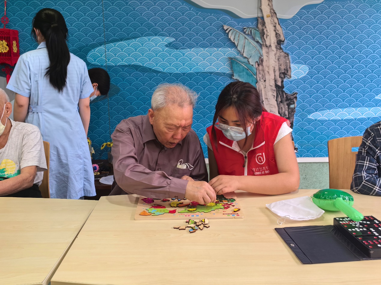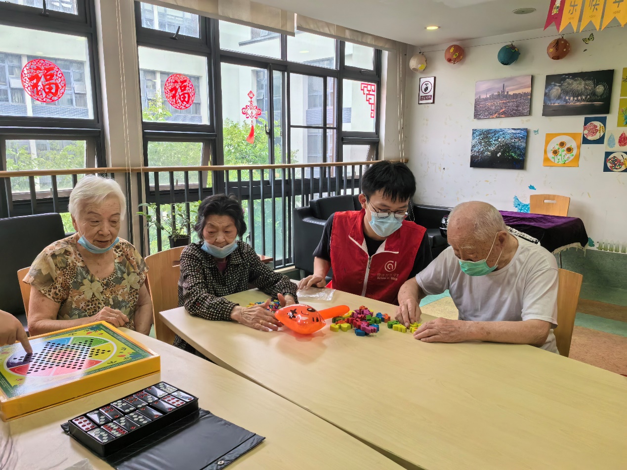 结束蒙眼摸物的游戏后,志愿者们陪老人们聊天,对老人的身体等情况进行了关心。随后,工作人员拿来老人平时爱玩的桌游,志愿者们陪伴老人玩了会桌游,大家一边聊天一边进行桌游,其乐融融。整场活动也让老人们感到无比的温暖和甜蜜。