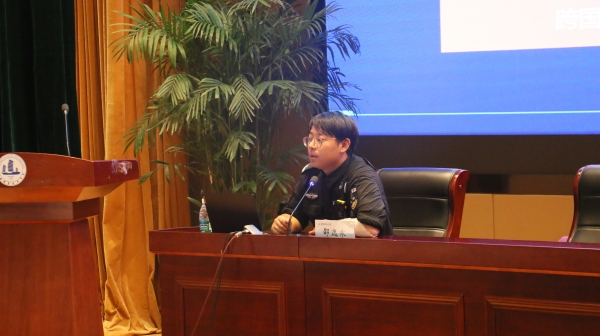 雪浪派出所山水城警务站的邵警官为新生开展防范电信网络诈骗的安全教育。他从电信诈骗的典型类型入手,讲述了电信诈骗分子的主要作案手法,并用大学生群体中的具体案例和工作经验解答了如何鉴别和预防诈骗信息。
