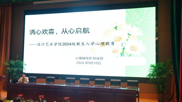 学工办辅导员林佳燕为新生开展“满心欢喜,从心启航”入学心理教育讲座,她通过案例分析新生常见的适应困难,就如何更快更好适应大学生活分享了几个实用的心理调适方法,并引导同学们正确看待“心理感冒”,学会主动求助。与此同时,林佳燕就引导新生明确大学定位、精准职业规划开展生涯教育,她介绍了设计学院学子近三年的就业趋势,对高质量就业校友的典型案例进行解读分析,鼓励新生提早做好学业规划,把握生命的宽度,不断拓宽知识领域和技能边界,勇敢追求自己的梦想。