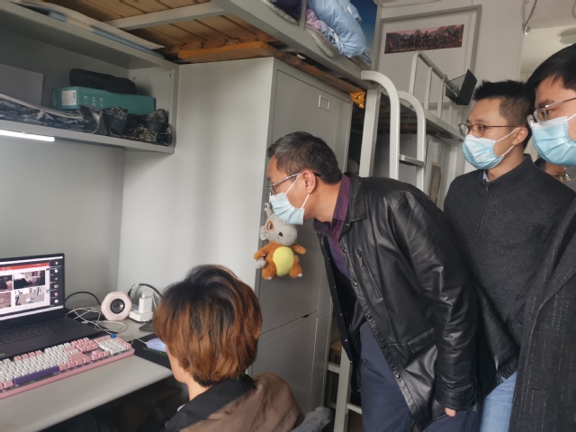 班主任们通过走访了解到了学生线上课堂学习情况和近期的思想、心理动态,毕业班班主任重点关注毕业班学生转本复习准备情况和毕业设计进度,对宿舍卫生不达标的宿舍进行整改指导。