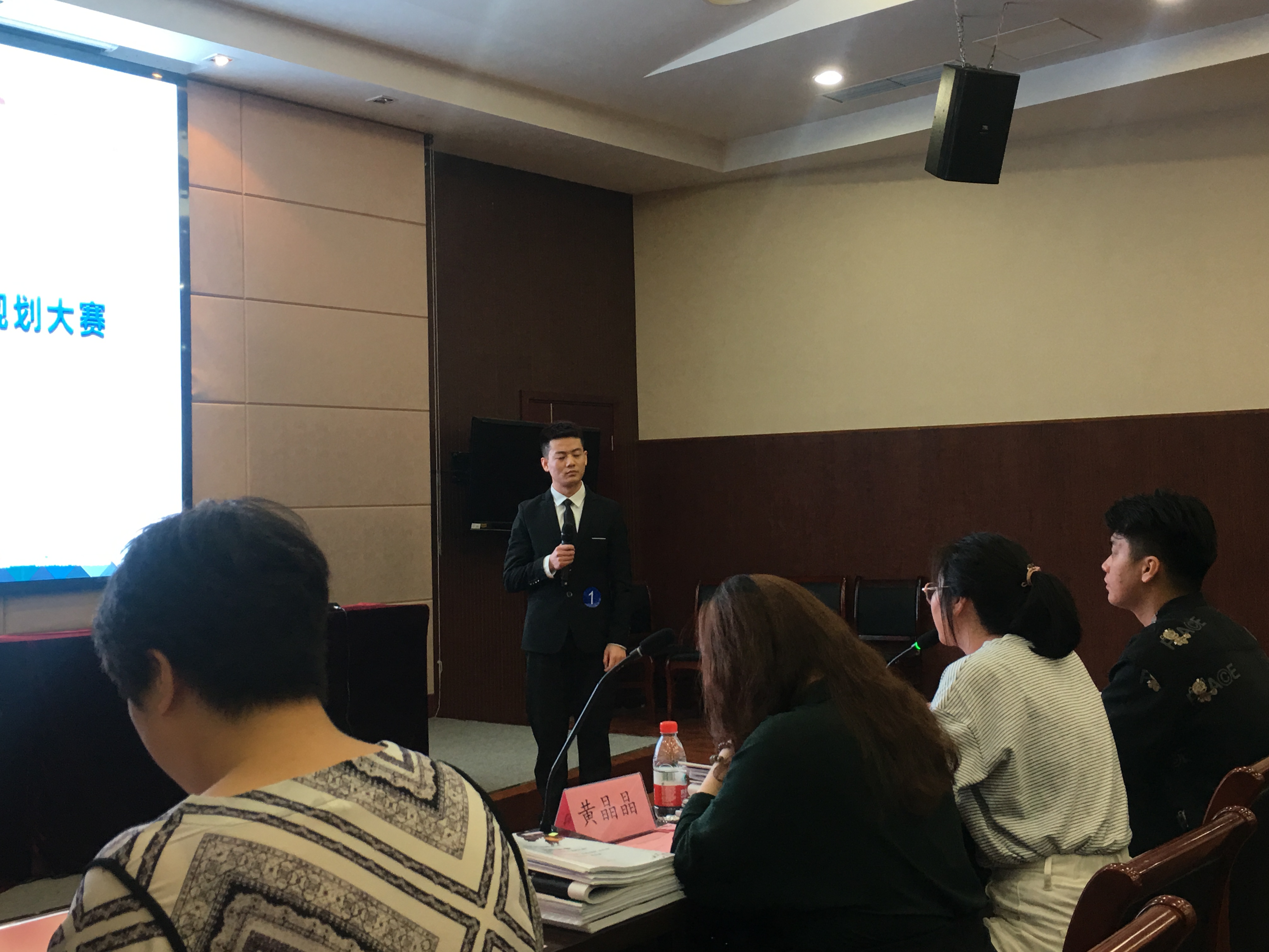 决赛分为5分钟自我展示和评委提问两个环节,选手成绩由职业生涯规划书、现场展示和评委提问三部分组成。在自我展示环节,王超分享了自己成为一名优秀室内设计师的职业梦想;林文浩分享了自己“三尾狐设计事务所”的创业过程和未来规划,他的3D打印作品和激光雕刻作品赢得了现场评委的兴趣和好感;蔡天伟阐述了自己立志于携笔从戎、报销祖国的职业追求。在备赛的一个多月时间里,三位选手从生涯规划书的修改和完善、生涯人物访谈、到演讲稿撰写和模拟演练,在决赛现场发挥出了较高水平。