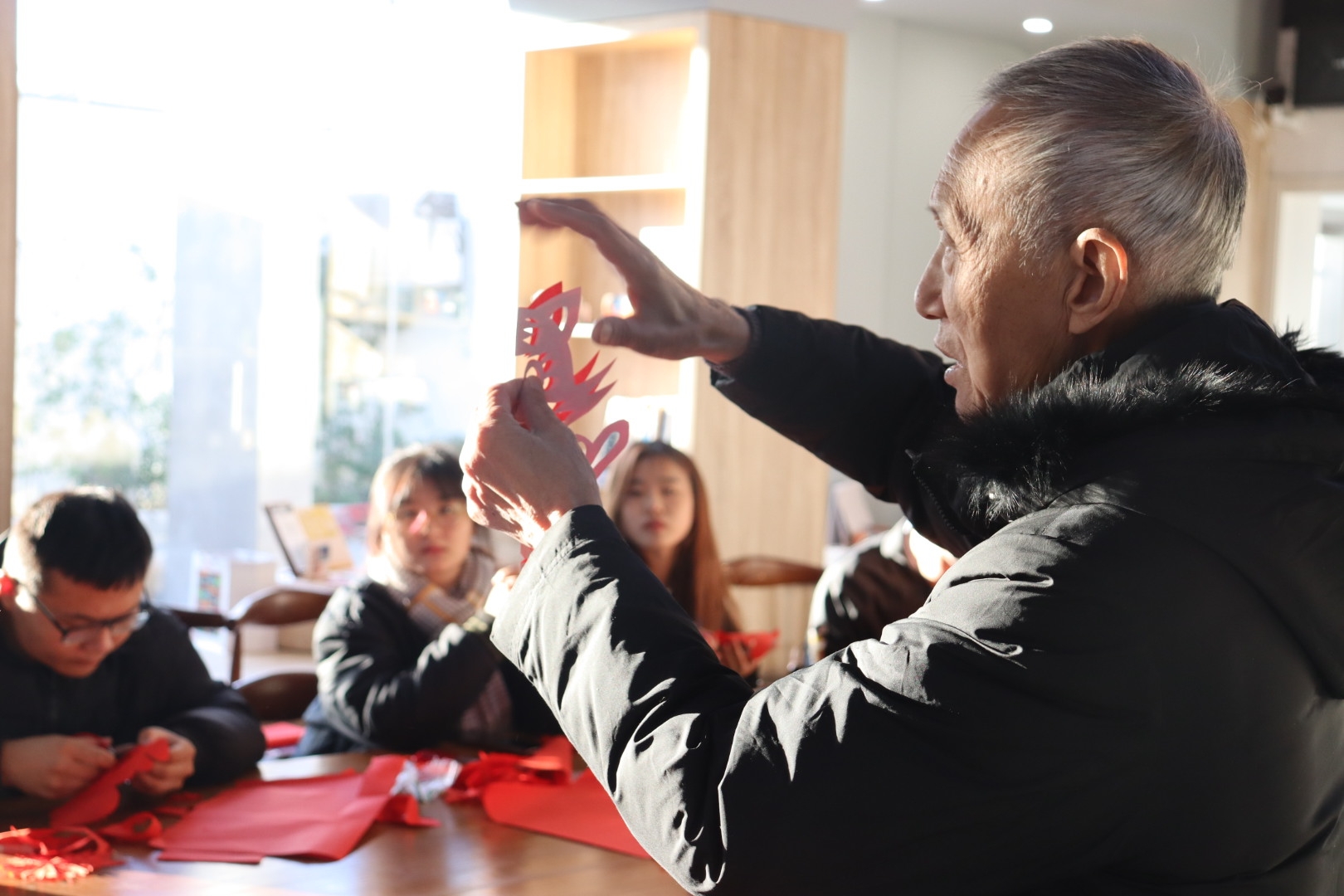 11月23日,设计艺术学院陈推老师、江董玉老师带领党员同学们一同前往拜访红色创作剪纸艺人郭宗新老先生,并邀请老先生到校给师生们授课,感受剪纸这项非遗文化的魅力,传承和发扬中华优秀传统文化。