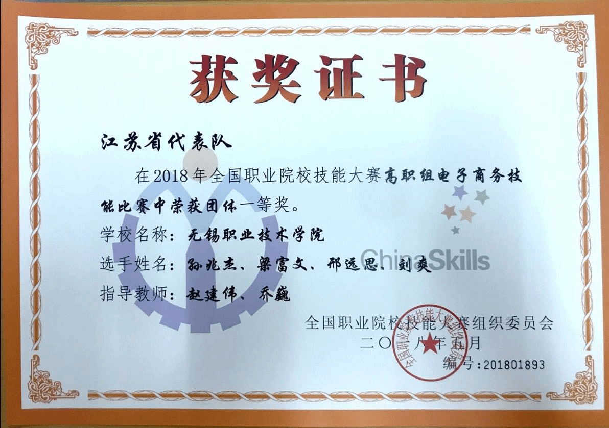 国赛一等奖获奖证书