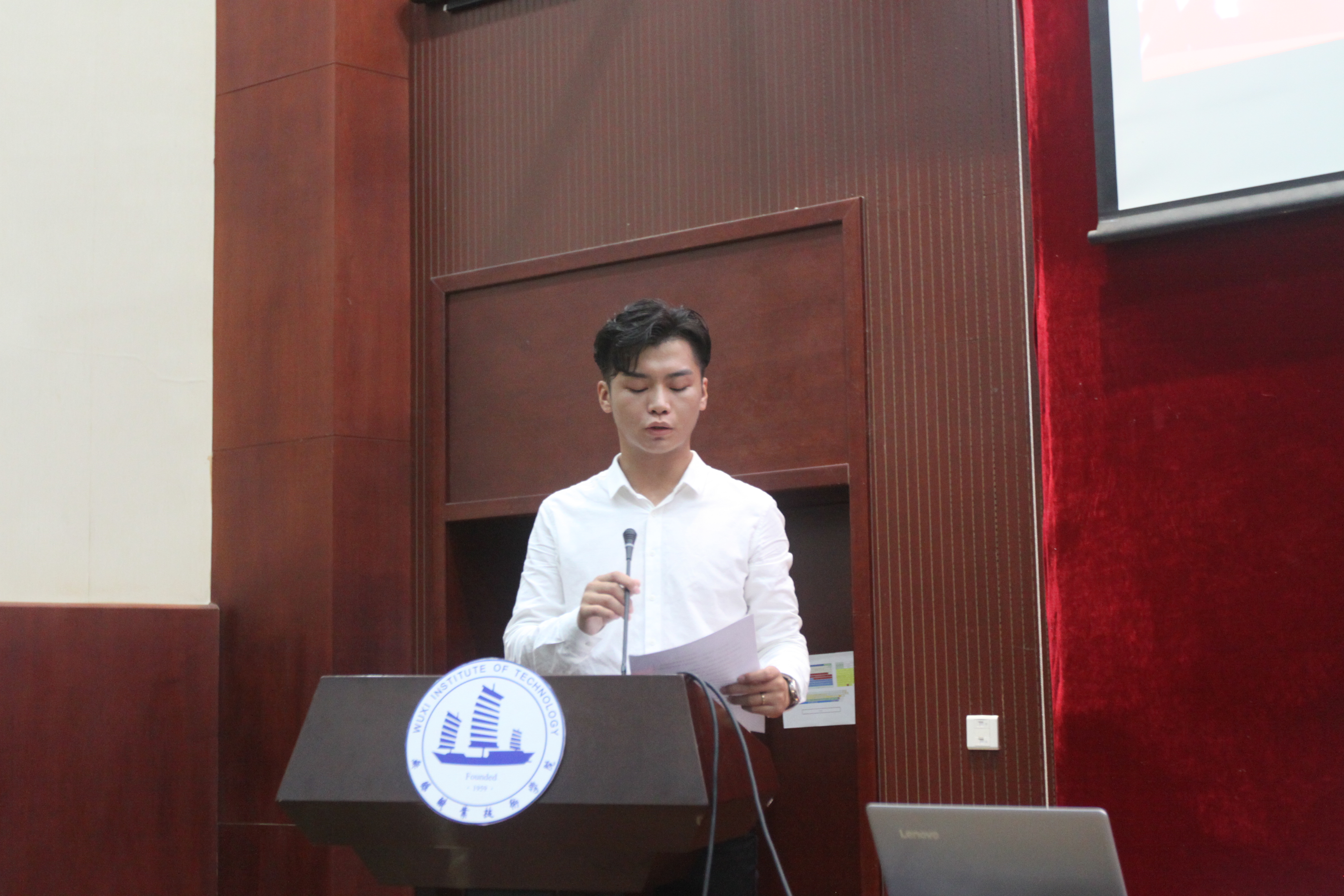 室内71632班的史舒阳作为老生代表发言,希望学弟学妹在生活上寻找兴趣,发挥自己的特长,让自己的生活丰富多彩;在学习上独立思考,学好专业知识,成为一个综合性人才。