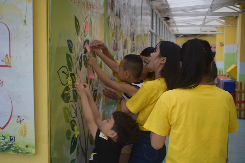我们和小朋友们一起画画,教给他们一些很基础的绘画技巧,辅助小朋友通过展望未来,以画画的形式将自己的梦想表现出来并集体分享。这也是利用我们的专业优势,寓教于乐,从而激发孩子们对艺术的兴趣。从中我们也学会从孩子的视角和想法去观察,去感悟,去创作。