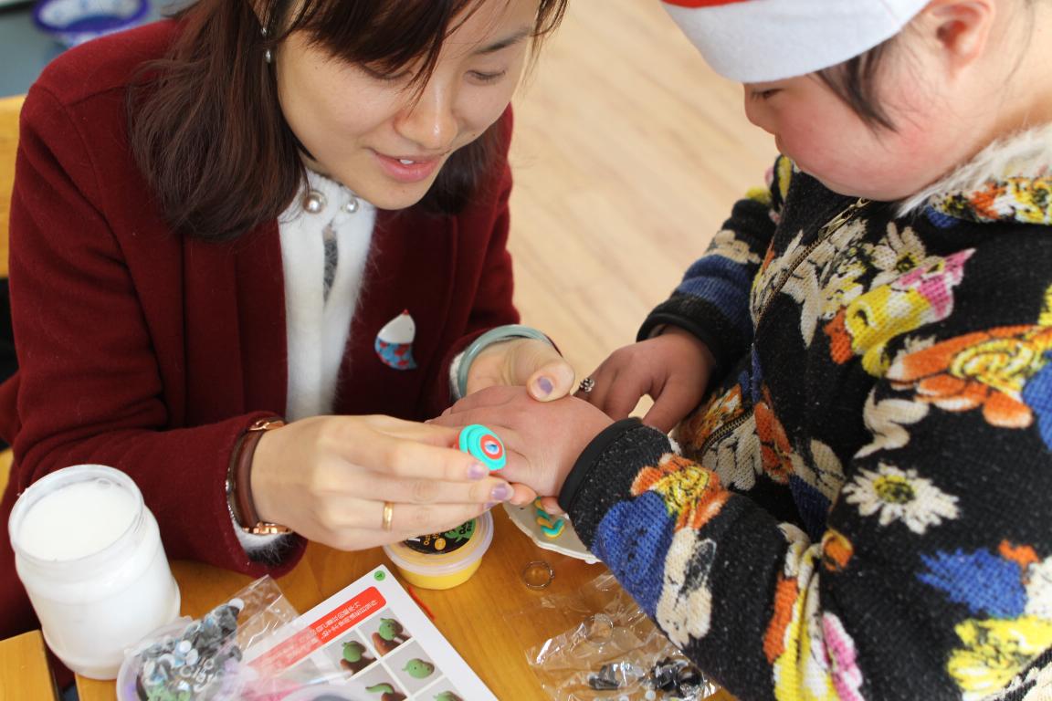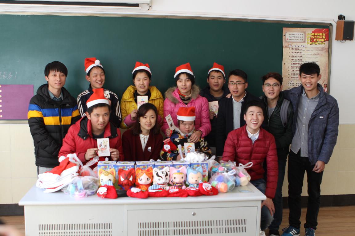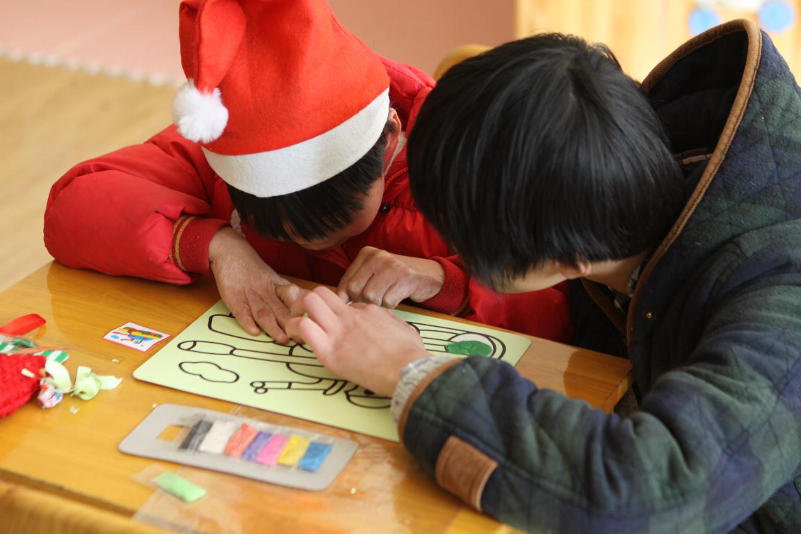 到达学校后,培智学校的老师把我们带到了事先安排好的班级。接下来,我们的志愿者开始分班上课,分别教授手工,绘画以及游戏课。学院老师积极参与活动,把事先制作好的风铃、明信片、手绘储蓄罐等小礼物送与孩子们;学生会采购了一些沙画,橡皮泥,圣诞帽等一些小玩具用于教学,志愿者通过与孩子们一起玩游戏来加强情感,给孩子们带去快乐。整个过程生动有趣,其乐融融。