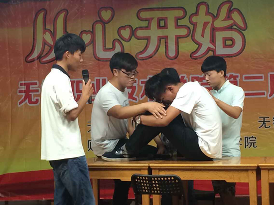 2015年6月9日下午,无锡职业技术学院第二届心理情景剧大赛在我校青春剧场展开最后一轮角逐。本次活动的主题是:从心开始,悦纳自我。主持人宣布比赛开始之后,我校八大院系的表演陆续上演。
