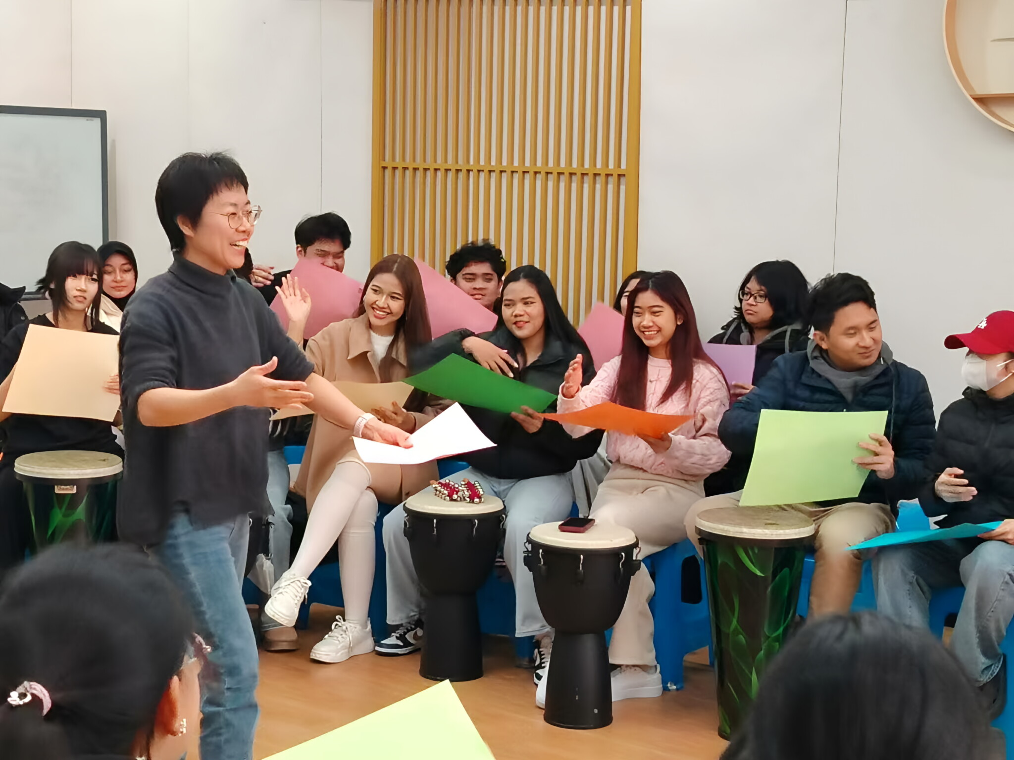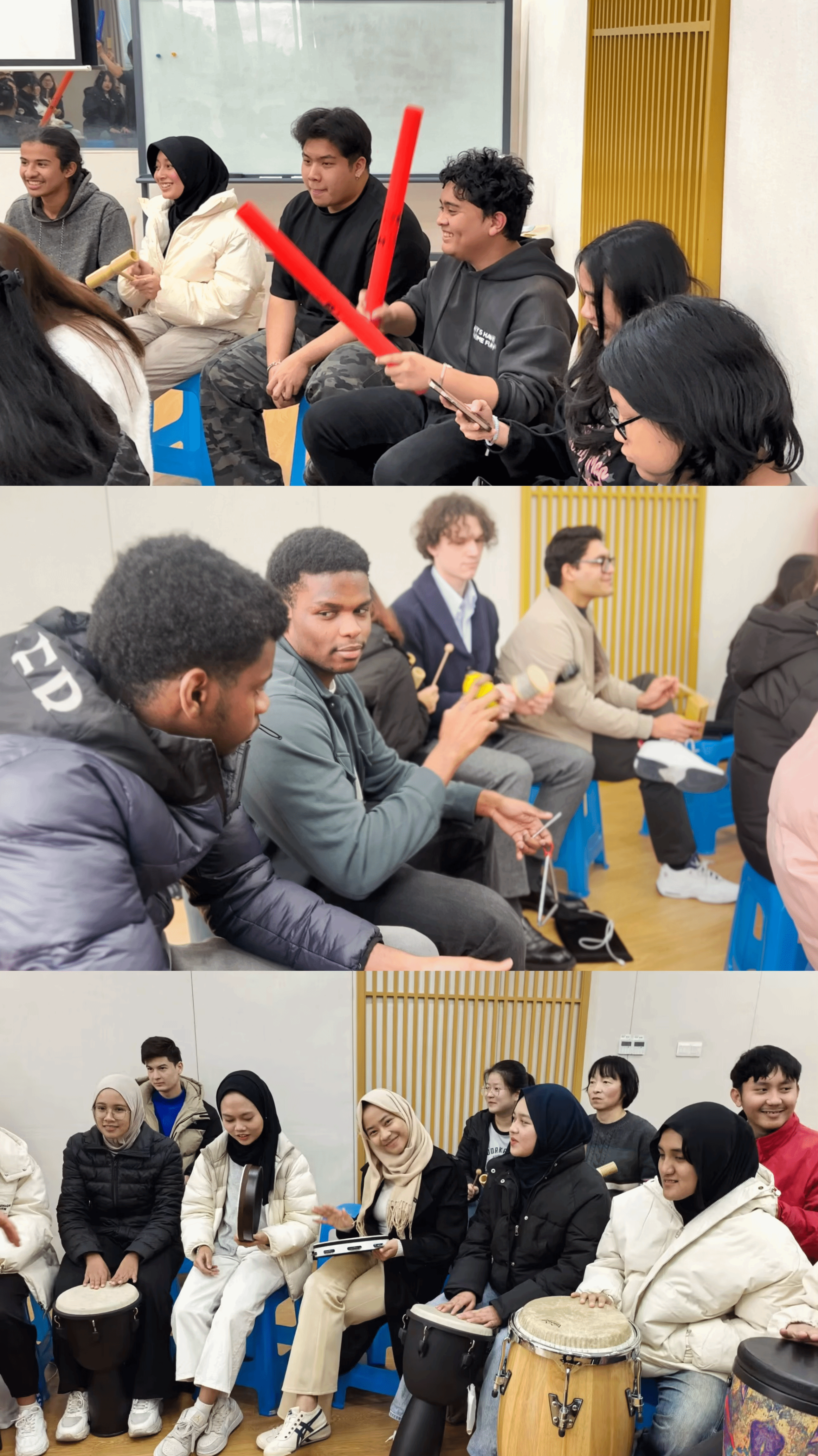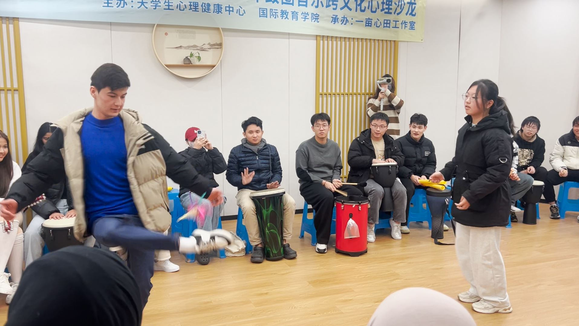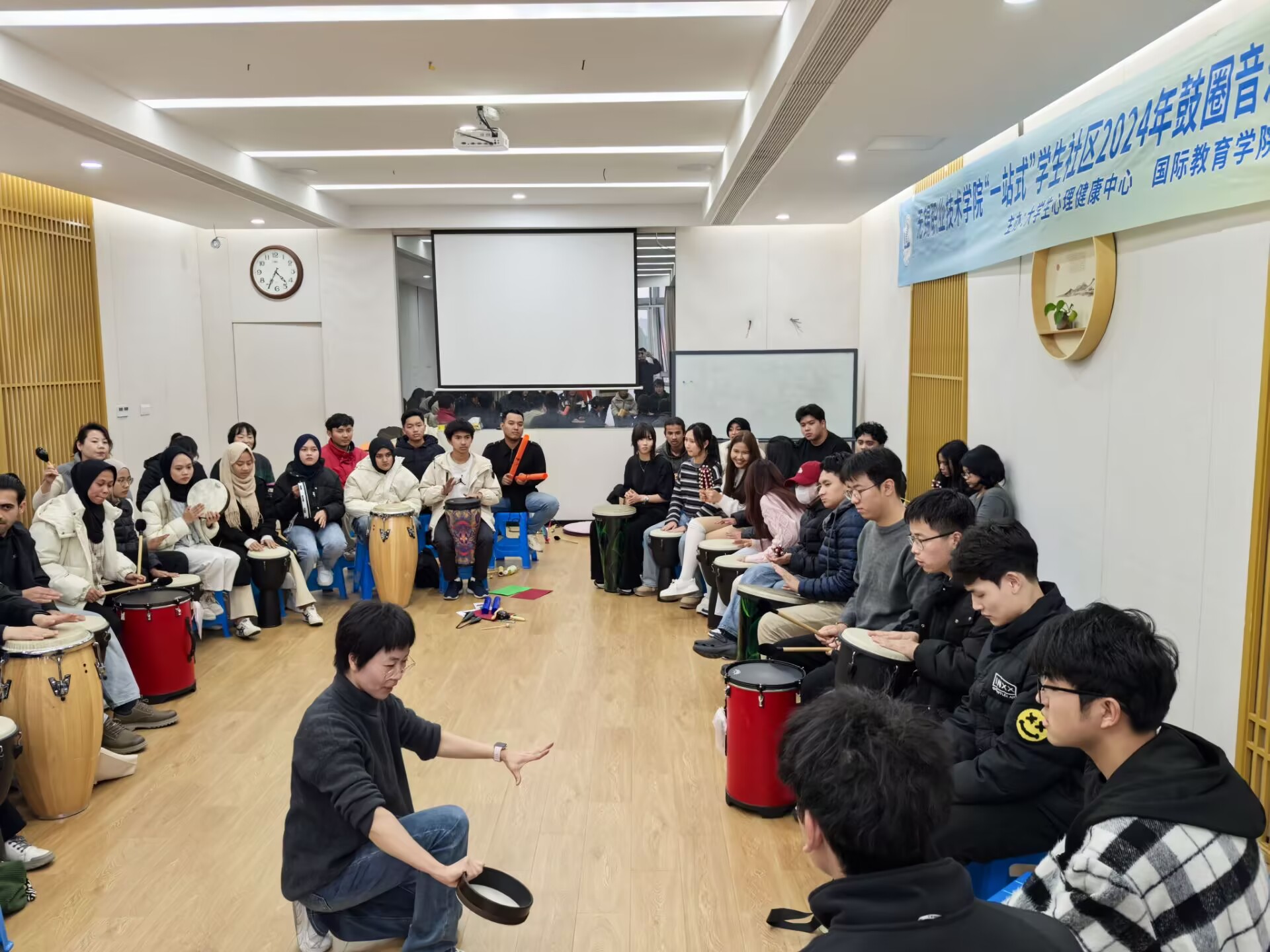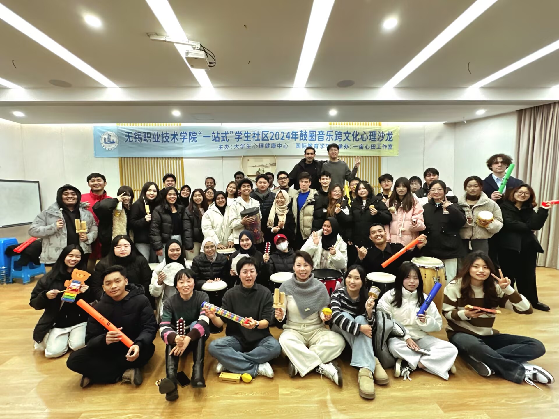 为丰富留学生的校园文化生活,搭建中外学子友谊的桥梁,促进文化交流互鉴,12月26日下午,无锡职业技术学院“一站式”学生社区内,50余名中外学子齐聚于此,开启了一场别具匠心的鼓圈音乐跨文化心理沙龙。活动由校心理健康中心、国际教育学院联合主办,一亩心田工作室承办,设计学院林佳燕、心理中心刘福莲、国际中文教师施红珍共同策划。