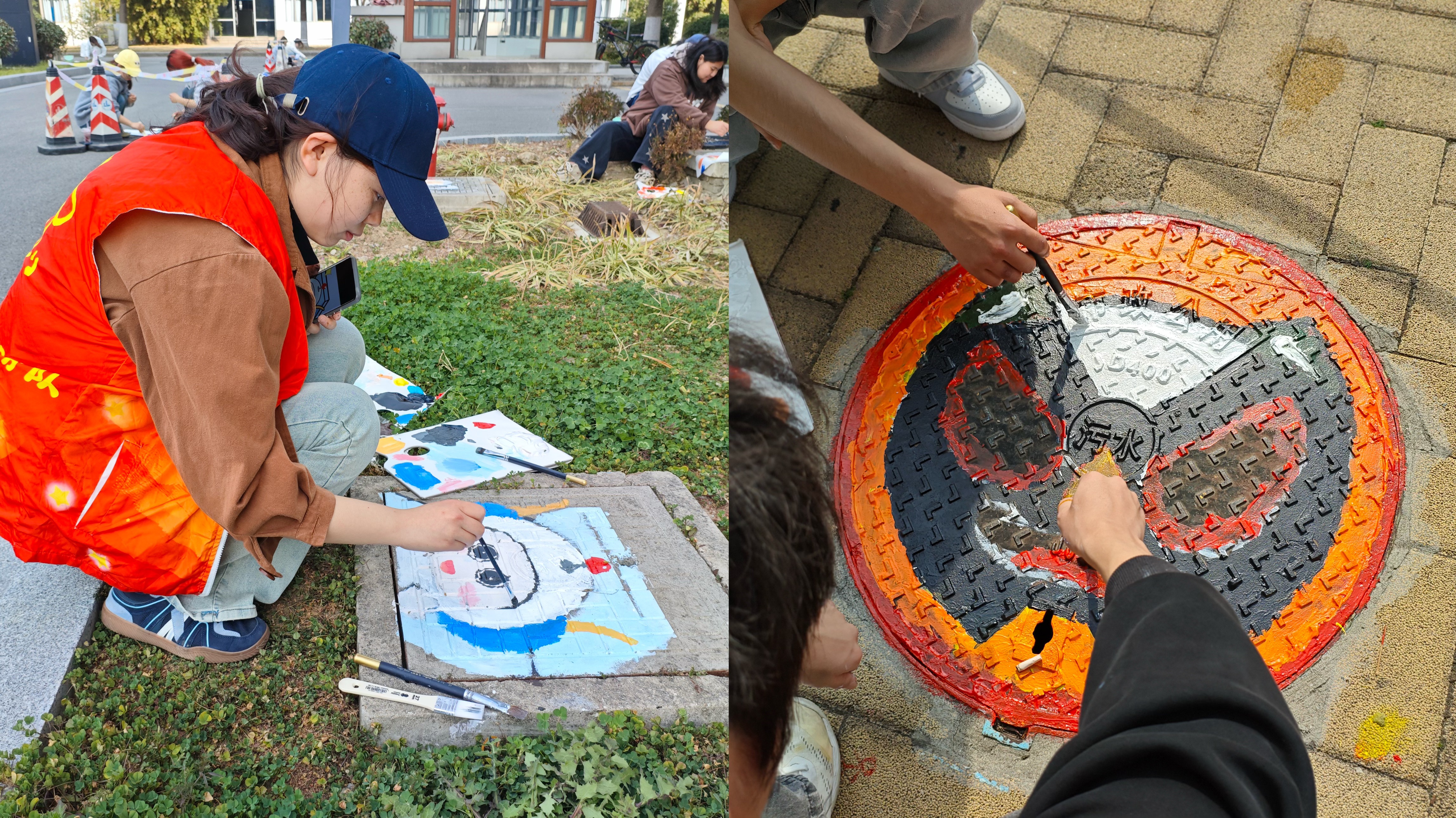 3月2日,在清晨的校园里,一群手持画笔的设计学子成为一道亮丽风景。在“萤火微光”志愿服务队的组织下,30余名学生志愿者在30度的烈日下,以井盖为画布,将艺术创意融入校园美化。从憨态可掬的卡通形象到寓意深远的公益主题,志愿者们用丙烯颜料将原本单调的井盖变成“文明之眼”。校园吉祥物“锡锡”,与无锡非遗代表——惠山泥人阿福阿喜的结合更是将校园文化与地方特色紧密相连,展现出浓厚的文化气息和温馨的校园氛围。活动指导教师史嘉怡老师表示:“我们希望用艺术唤醒大家对公共空间的关注,让雷锋精神在点滴细节中传承。”这些井盖上的画作不仅增添了校园的趣味性,还传递了积极向上的价值观,引得过往师生纷纷驻足观看、拍照留念。志愿者们用实际行动诠释着“赠人玫瑰,手有余香”的真谛,让艺术之花在校园内外绚丽绽放。