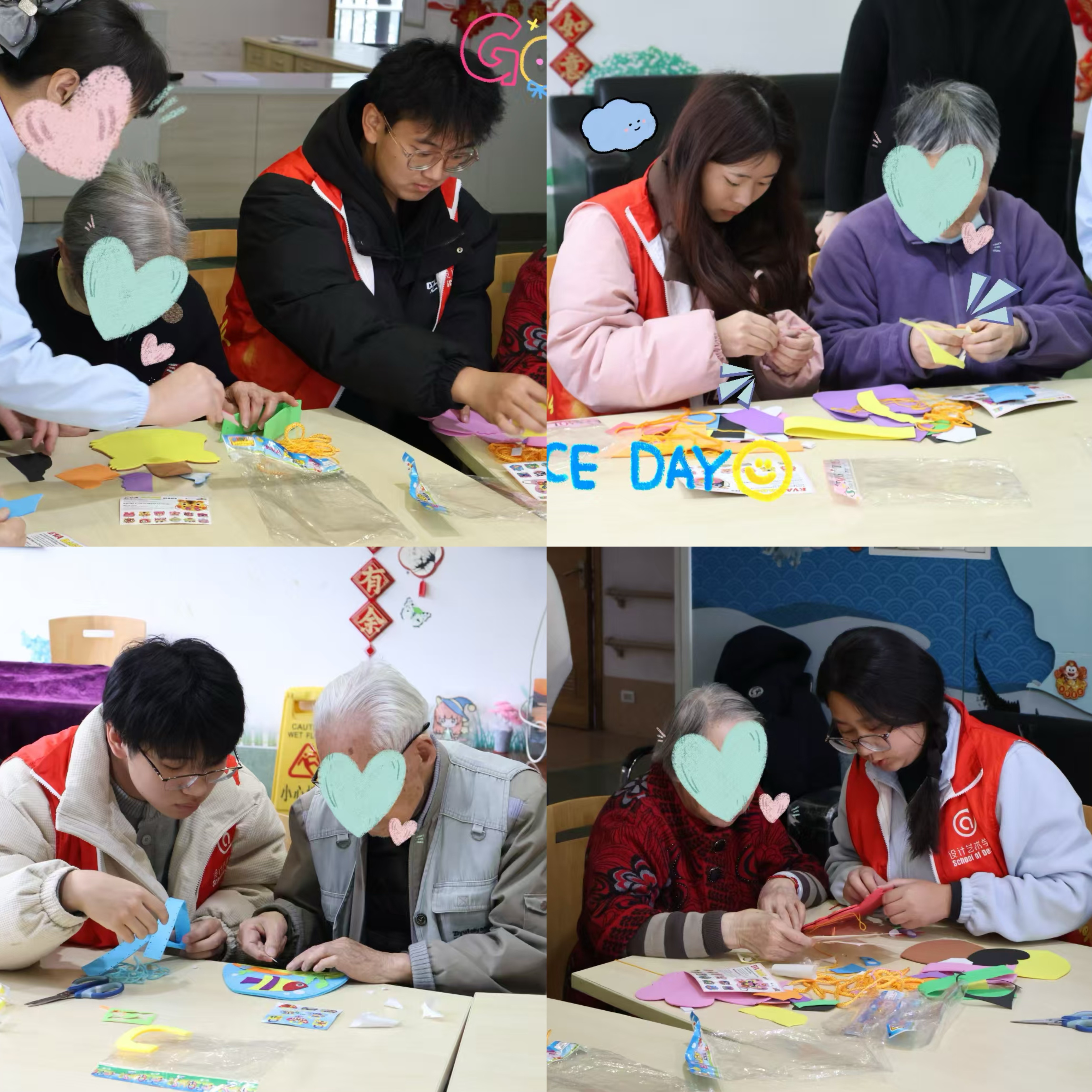 3月3日下午,志愿者们走进无锡社会福利中心老年托养部,发挥专业特长,陪伴老人制作暖心手工包。活动过程中,同学们耐心细致地为老人讲解制作步骤,手把手教他们如何用塑料模型针将软泡沫巧妙地拼接起来。老人们学得十分认真,尽管动作稍显迟缓,但眼神里满是专注。在大家的共同努力下,一个个充满创意的手工包逐渐成型。每个人的脸上都洋溢着满足和幸福的笑容。陪护活动在欢声笑语中落下帷幕,志愿者们与老人们一起度过了难忘的时光,为他们带去了温暖和关怀。离别时,老人们拉着志愿者的手,激动地说:“每次都盼望着你们来,你们来了,我高兴那!”志愿者们也深刻体会到了陪伴和关爱的重要性,坚定了持续参与志愿服务的决心。