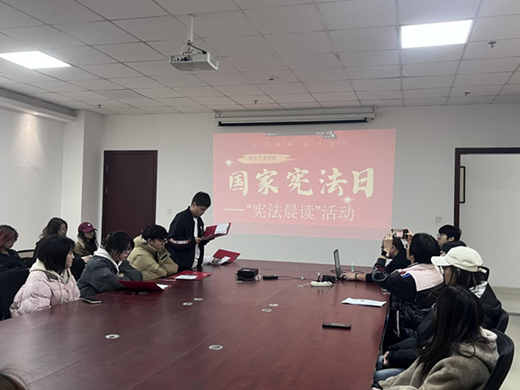 为全面学习贯彻党的二十大及二十届三中全会精神,深入学习贯彻习近平法治思想,加强宪法宣传教育工作,提高大学生的法治素养,设计艺术学院于12月4日上午在综合楼215举办“宪法晨读”活动。本次活动由辅导员林佳燕老师主持,出席活动的有各班班委、学生党员及入党积极分子。