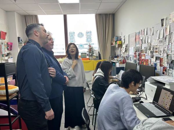 Mike·Fitzpatrick一行还参观了我院部分工作室、实验实训室和绎江南文化传承创新基地,对相关建设成果给予了较高的评价。
