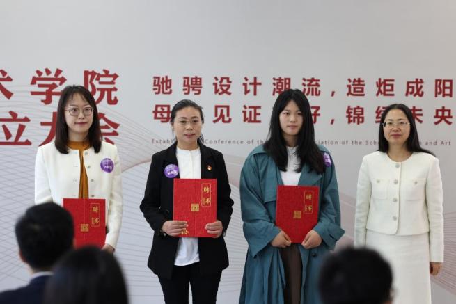 选聘优秀校友辅导员融入学工团队,是设计艺术学院推进三全育人的有效创举和有益实践,借此校友会成立契机,设计艺术学院进行了新一批优秀校友辅导员聘任仪式,苗勇宣读了聘任文件,杨雪琴为卢东华、单海玲、王嘉慧三位校友颁发优秀校友辅导员聘书。