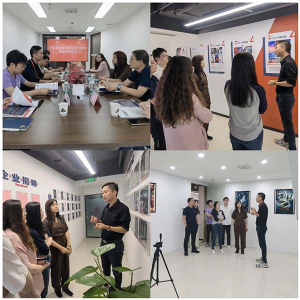 9月25日下午,调研组一行首先前往南京迪默塔数字科技有限公司。公司总经理蒋广登、总监陈旻、技术骨干施程耀等专家介绍了公司的发展历程、新兴技术的市场应用及需求、产教融合业务等情况。我院教师观摩调研了迪默塔专业工作室、校外实践基地、校企合作成果案例等。双方就影视包装、游戏美术设计等领域专业技术应用发展趋势、校企合作的实训教学体系构建、学生与专业师资技术技能提升路径等议题进行了重点探讨。双方表示将进一步落实今年5月签订校企合作框架协议,办好双方共建校外实践基地。