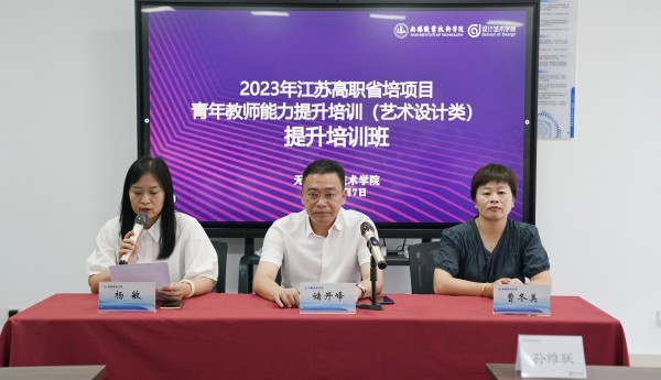8月7日上午,2023江苏高职省培项目青年教师教学能力提升培训班(艺术设计类/艺术设计)在无锡职业技术学院厚德楼709隆重开班。无锡职业技术学院党委委员、副校长储开峰,继续教育学院副院长曹冬美出席了开班仪式,仪式由设计艺术学院院长杨敏主持。