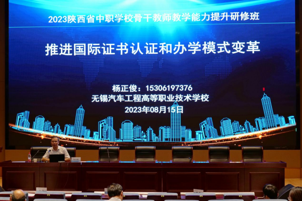 无锡汽车工程高等职业技术学校原教务处处长、现建筑系主任杨正俊教授带来的题为《推进国际证书认证和办学模式变革》的讲座,从职业教育办学模式变革的动因、推进国际职业资格证书认证的概况、国际标准引领下职业教育办学模式变革的路径三方面为学员详细阐述了在德国双元制背景下的AHK国际职业资格证书项目的背景、缘起、特征、概况、课程安排,和国际标准引领下职业教育办学模式变革,教学资源的建立。