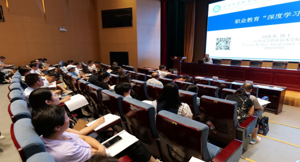 无锡市教育局职业教育和社会教育处副处长、无锡市知名职教专家张启森作了题为《完善教学评价体系建设,推动职业教育改革发展》的专题讲座。张启森提出了教学的两个转向:一是强调“素养本位”,二是强调教学的有效性和评价的协调性。讲座过程中,专家与学员热烈探讨了如何实施职业教育质量工程、推进产教融合校企合作、深化校企协同育人改革、以赛促教提升技能水平、加强双师教师队伍建设、推进智慧职业教育建设、切实提高产业服务水平、拓展职业教育对外开放等重点论题。