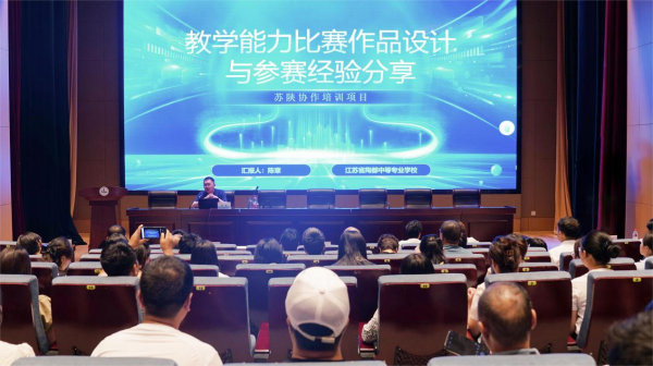 江苏省陶都中等专业学校智能制造系副主任、全国中职教学能力比赛一等奖获得者陈章为学员们带来了题为《教学能力比赛作品设计与参赛经验分享》的精彩讲座。陈章主要从组好团队、写好文案、选好课题、拍好视频四方面为学员们做了教学能力比赛的经验分享。学员们积极提问讨论,收获满满。