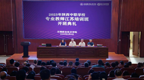 2023年8月8日上午,“2023年陕西中职学校专业教师江苏培训班”在无锡职业技术学院国际交流中心隆重开班。无锡职业技术学院校长周桂瑾、无锡职业技术学院设计艺术学院党总支书记苗勇、无锡职业技术学院继续教育学院副院长曹秀中出席了开班仪式,仪式由无锡职业技术学院设计艺术学院院长杨敏主持。