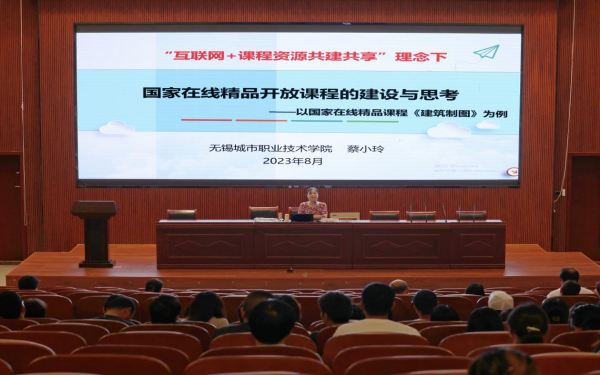 无锡城市职业技术学院建筑与环境工程学院院长蔡小玲教授所作精彩的《“互联网+课程资源共建共享” 理念下 国家在线精品开放课程的建设与思考——以国家在线精品课程< 建筑制图>为例》专题讲座。蔡院长以自己的国家在校精品课程《建筑制图》为例分享了精品课程的制作过程和心得,从新形态课程建设的必要性出发,探讨了新形态课程的主要特点及建设标准,进而延展了相应的课程资源建设经验等等。