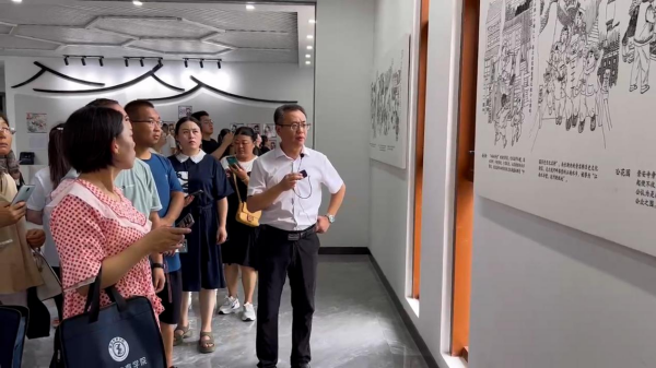 无锡职业技术学院设计艺术学院党总支书记苗勇、环境艺术设计系承剑芬教授等专家,带领学员们在无锡职业技术学院“绎江南”文化传承创新教育基地及“泥空间”惠山泥人大师工作室、“新陶古韵”宜兴紫砂大师工作室、云起工坊等课程思政及美育基地进行了以“文化+”背景下职业教育以美育人的实践探索为主题的现场教学。专家们介绍了设计艺术学院在智能制造特色校背景下,坚持“吴韵研创、技艺双融”教学理念,加强产教融合、校企合作,聘请无锡非遗大师、业界大咖进课堂,致力于区域文化的传承创新研究,在以理工科专业见长的职业院校有声有色地开展了美育实践,并取得了较为丰硕的育人成果。学员们表示,通过此次现场教学,不仅直观领略了无锡的江南文化、非遗文化,更对职业教育的美育建设有了新的理解。