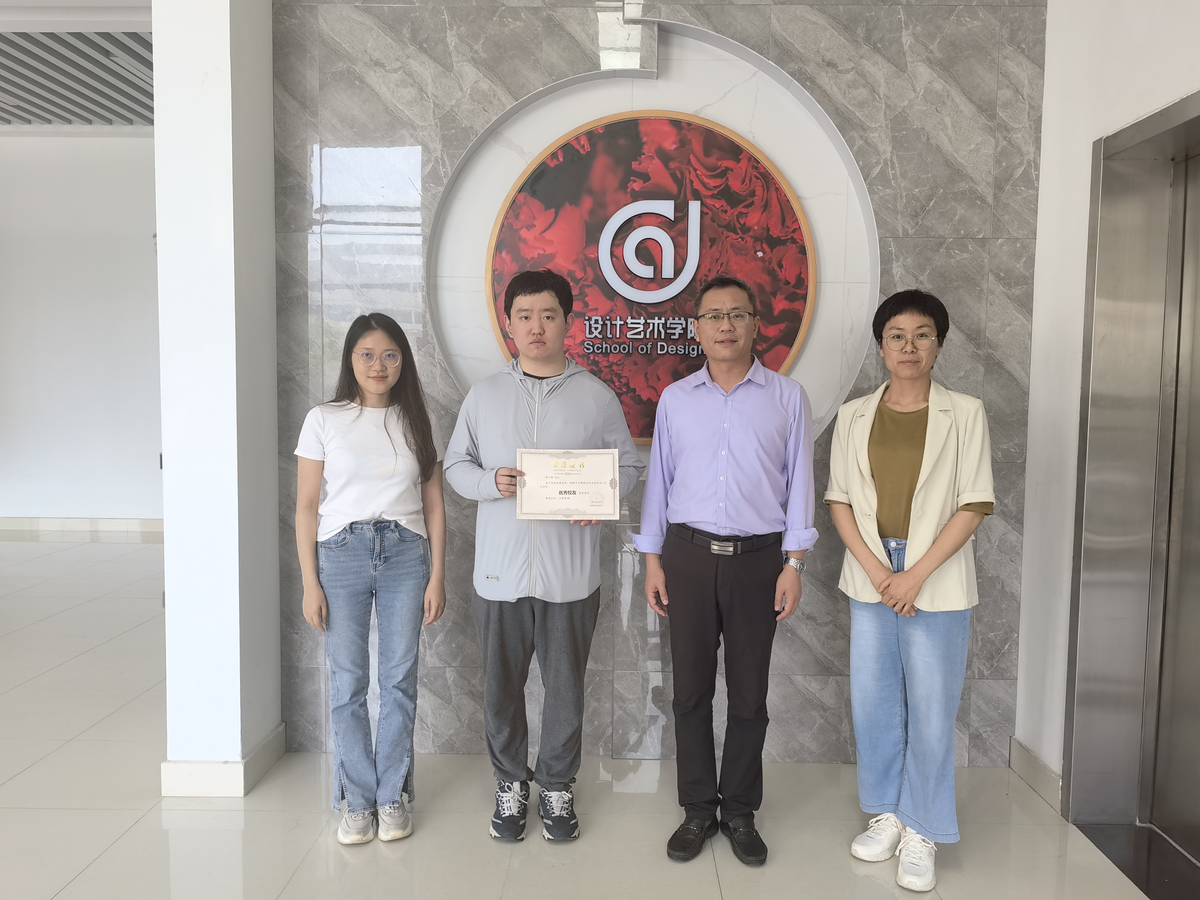最后,辅导员林佳燕寄语同学们在今后的学习和生活中以优秀校友为榜样,珍惜在校时光,关注社会及行业需求,努力学习和掌握相关技能,树立正确的就业择业观,为实习和就业打下坚实基础。学院党总支书记苗勇为陈之翰颁发优秀校友证书。