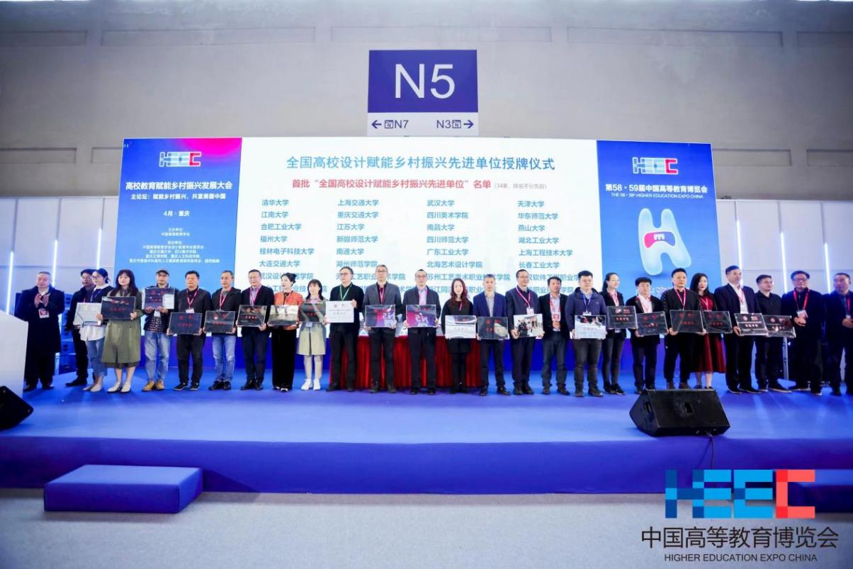 4月8日,未来设计师·全国高校数字艺术设计大赛(NCDA)亮相在重庆召开的第58·59届中国高等教育博览会“高校教育赋能乡村振兴发展大会”,大会与教育界、行业学会/协会、企业代表近450余人齐聚重庆,共同庆祝由未来设计师大赛组委会和民政部直管智惠乡村志愿服务中心联合发起的“我为乡村做设计”志愿服务成果之一《设计的力量——全国高校设计赋能乡村振兴创新案例》新书发布及相关颁奖仪式,并以“赋能乡村振兴,共富美丽中国”为主题展开研讨和交流,设计艺术学院杨敏院长一行受邀参加了本次大会。