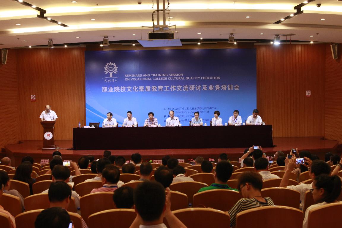 本次培训会由教育部职业院校文化素质教育指导委员会、全国高职院校文化素质教育协作会联合主办。来自全国职业院校文化素质教育指导委员会委员、专家、学者及首批国家职业院校文化素质教育示范基地建设单位和创新创业教育基地示范基地建设单位的校领导和基地负责人、教指委委员单位代表100多人,围绕职业院校文化素质教育、创新创业教育、课程与资源建设展开了交流与研讨,我校作为文化素质和创新创业教育两个基地学校入选单位,创新创业分委会主任单位,主持了创新创业教育基地建设交流研讨和培训分会场。
