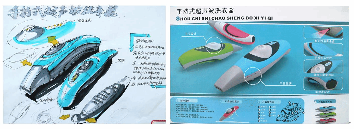本次比赛共分为产品创意及造型设计、快速成型加工与展板设计两场举行,包含产品创意草图绘制、产品外观造型设计、产品结构设计、样品快速成型加工、展板设计共5个环节,赛程共计9个小时,涉及的知识面广,赛程时间长,且跨产品设计、模具设计、平面设计三个专业,难度大复杂程度高,对于团队的协调配合能力要求非常高。