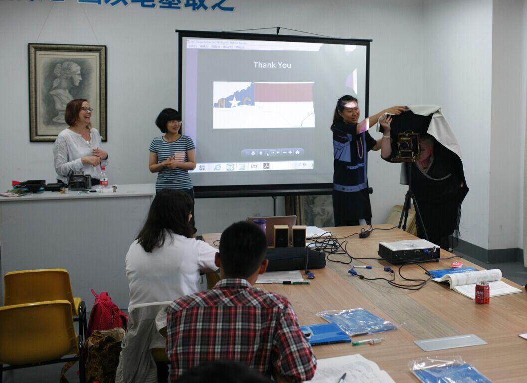 5月18日上午,美国皮特社区学院的师生又一次来到我院进行学术交流。这是皮特学院和我院师生的第三次接触,潘祖平院长向皮特社区学院设计专业的师生表示热烈的欢迎,皮特社区学院的教师也介绍了自己学校的一些情况,紧接着走进摄影课堂,通过现场示范、师生互动为我院学生讲了一堂生动的摄影课《life in north California 》,课堂上老师展示了他们的学校办学特色,并让学生们了解了照相机的种类以及成像原理,学生们在轻松愉悦的氛围中与外国友人交流,并与学生互动合影留念。(刘姣姣)