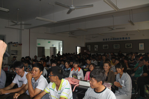 2013年9月24日,无锡青山橱柜老总平华先生一行4人来到我系,为配合环境艺术设计专业13级新生讲专业认识企业专用周教学,进行了长达2个小时的演讲,受到了学生的热烈欢迎。