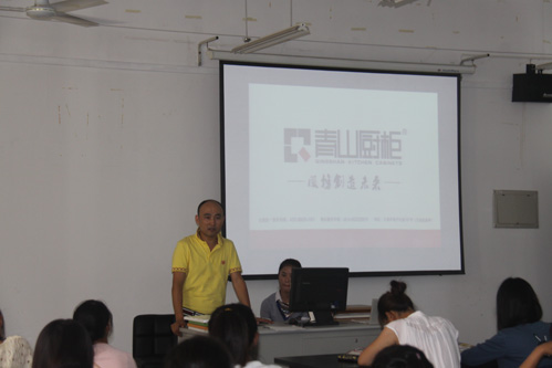 平华老总跟学生首先介绍了自己的企业的发展过程,从10年前创业初期5个人的小公司发展成为现在有10家分店的无锡橱柜地产品牌的企业;其次介绍了企业的经营理念,提出“永续经营”的概念;介绍了各个类型的橱柜产品,包括产品的材料、制作工艺;最后谈到了企业对人才的要求,指出高职人才具有的上手快、素质高的特点,像他们这样的企业非常欢迎高职生前来加盟。