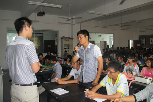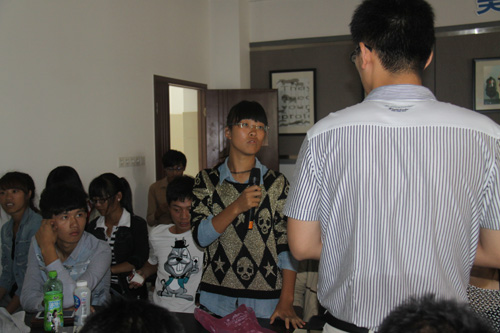 2013年9月25日,艺术系新生迎来了2位优秀毕业生代表来跟他们面对面交流,分享他们的学习、创业经历。面对两位创业颇有成就的学长,新生们问了很多问题,如怎样规划三年学习生活最有效?以后踏上社会最有用的专业课是哪一门?学习软件是不是非常有用等等,学长也非常耐心的回答。并且对新生提出四个问题,分别是你想做什么?你能做什么?最适合做什么?什么是你最喜欢的?弄清楚这四个问题后再定位自己的目标。