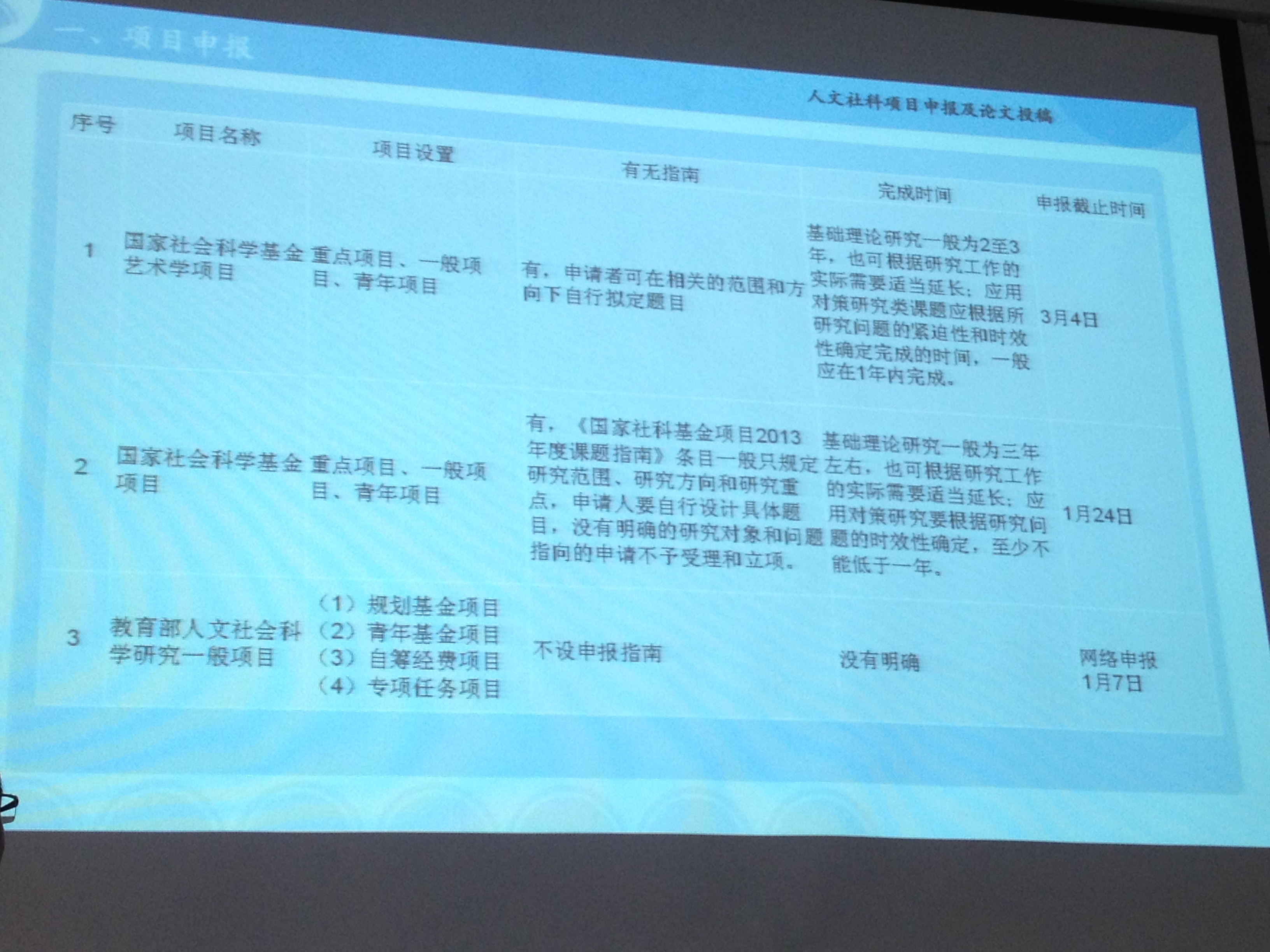 殷院长首先介绍了近年来艺术类专业科研课题的申报现状,根据以往课题申报过程中出现的问题,从申报前期准备、申报中的细节问题、申报材料的填写等三个方面来介绍,并重点介绍了选题中的一些注意事项及申报小窍门。