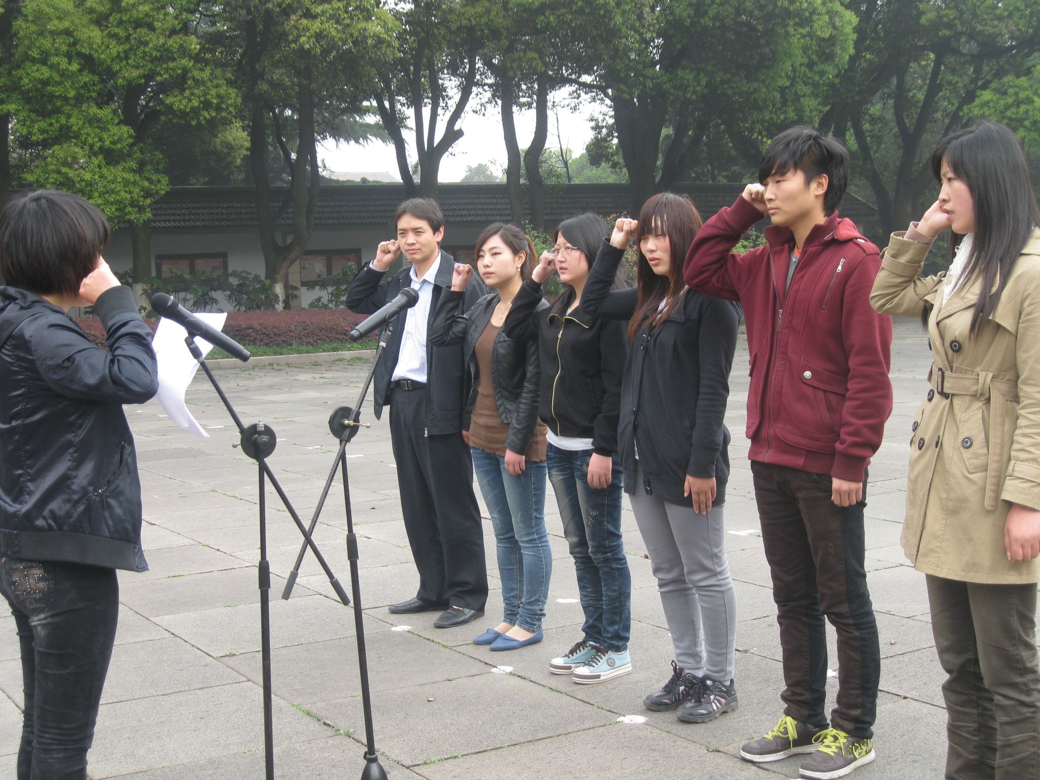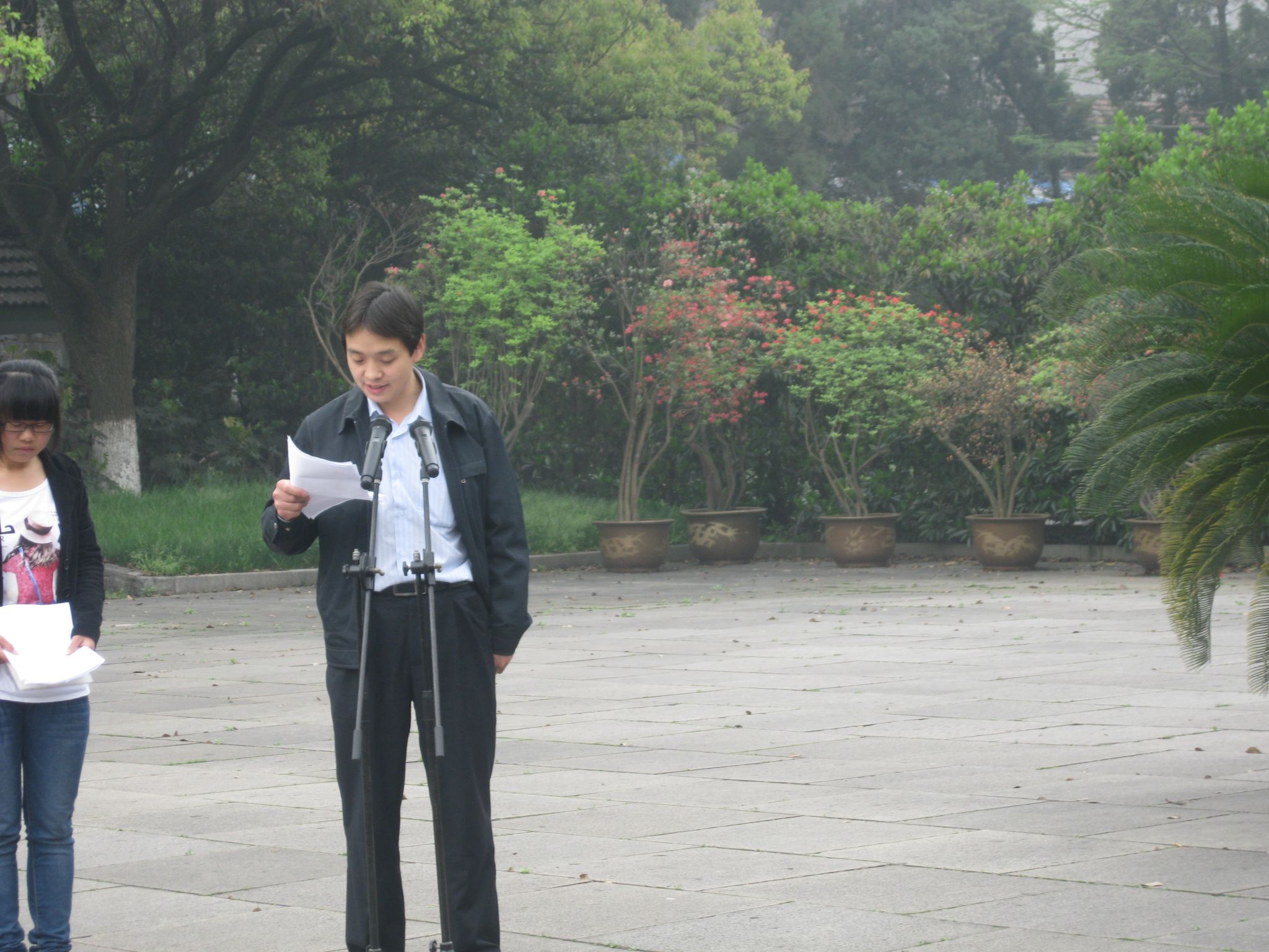 首先,学生代表向英雄纪念碑敬献花圈,接着全体人员为烈士默哀一分钟,以表达对先烈的无限哀悼。我系刘文平书记发言,他希望全体同学要深刻缅怀民族英烈伟绩,学习和领会革命先烈的爱国主义精神,树立社会主义和共产主义信念,共同为社会主义现代化建设努力学习。广告71132班潘忠露同学代表全体同学发言,号召大家学习烈士们崇高的献身精神与品质,认真反思自我的缺陷,脚踏实地地走好当下的每一步。接着潘忠露同学带领新入党同学面对党旗进行入党宣誓,誓词在纪念碑前久久的回荡,大家嘹亮而坚定的声音表达了对英勇伟大的革命先烈的敬佩。