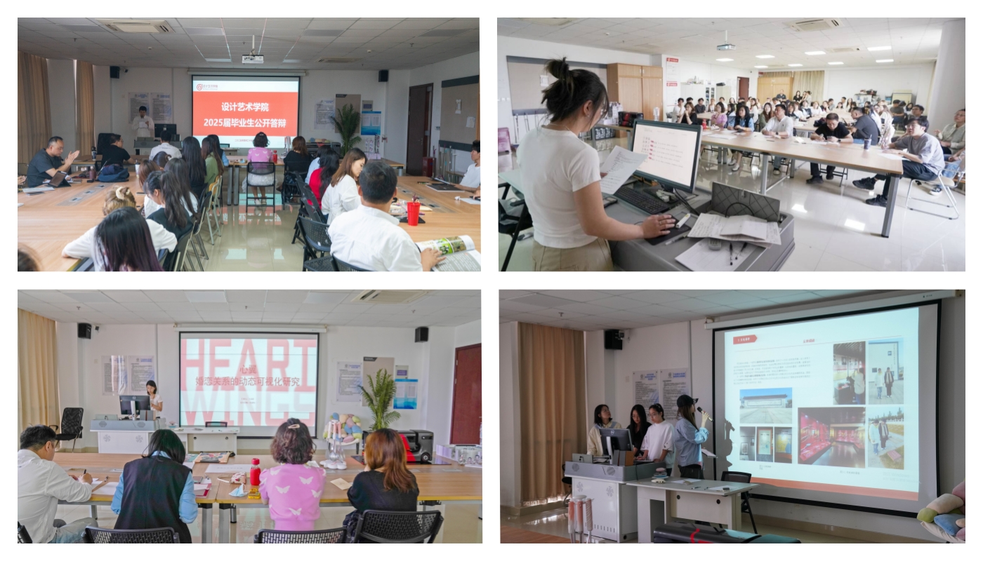 2025年4月29日下午,设计艺术学院2025届毕业设计公开答辩在厚德楼603教室如期举行。答辩委员会由院长杨敏教授担任组长,设计艺术学院全体教师与二年级学生代表共同参加,其余师生通过线上直播同步观摩。此次答辩旨在通过精心筛选的优秀作品展示,搭建全院师生深度交流与互鉴平台,并为即将进入毕业设计阶段的同学们提供标杆示范。